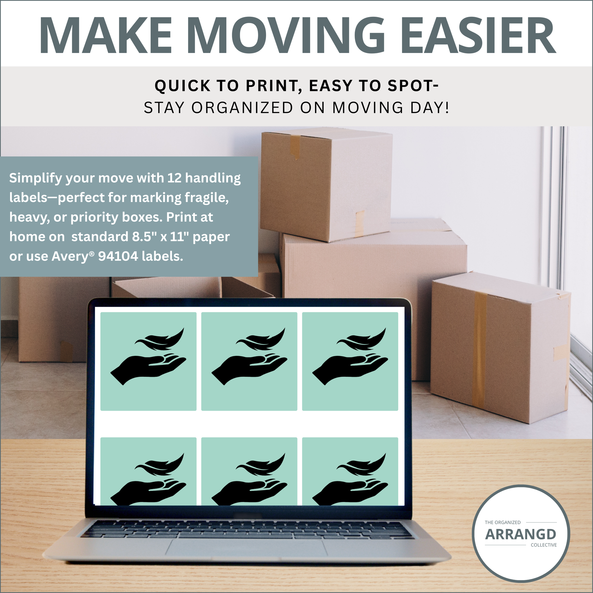 Created by a certified Project Manager, these printable moving labels are designed to help you pack with purpose, stay organized, and move with less stress. Whether you're labeling rooms or handling instructions, ARRANGD makes every box easier to manage.